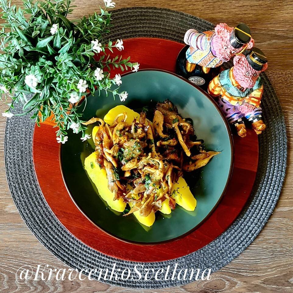 #традиции #Даугавпилс Вешенки - универсальный ингредиент для многих блюд. Они великолепны в дуете с картошечкой! Ингредиенты: вешенки, растительное масло для жарки, соль, перец, сливочное масло, чеснок Способ приготовления: Вешенки моем, режем. Разогреваем растительное масло и выкладываем грибы. Жарим на сильном огне, помешивая, около 5 минут. Добавляем измельченный чеснок и, помешивая, жарим на среднем огне 5 минут. Добавляем сливочное масло (для аромата и приятного вкуса), солим и перчим по вкусу. Обжариваем еще пару минут. При подаче грибов посыпаем свежей зеленью (укроп, петрушка, зеленый лук, на выбор). Приятного аппетита!