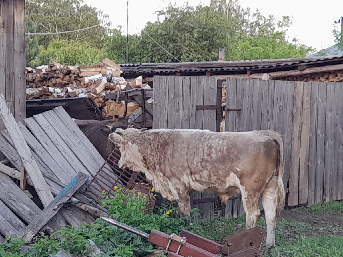Сначала загуляла Калина. После обеда я легла на послеобедку и услышала бычье рычанье- Ну,думаю, кто то с женихами пришел. Выскочила,увидела свою корову, ворота открыла, Калина пулей залетела домой, быков пришлось гнать на середину села... А вы можете себе представить,как можно гнать быков,когда оне не очень хочут уходить от невесты своей? Хорошо их было только трое. Бывало те года и десяток приволокут. Вот и бегает этот десяток вдоль заборов, дурниной орет, суется в каждую щель в надежде эту щель массово увеличить. Или между сбой борьбу начнет,подминая все на своем пути... Как то один раз машину нам помяли. Хорошо только дверь. А могли бы и на крышу залезть в азарте то. Дооолго потом летом машину в гараж загоняли. Сейчас опять стоит на улице... На следующий день я ехала за коровами в стадо, на стадионе,примерно две третьих пути, стоит себе Калина и с ней джигитный лось. Пастух же не будет за ними бегать весь день. Он просто отпускает их- и пусть бегут куда хотят. С глаз долой-из серд
