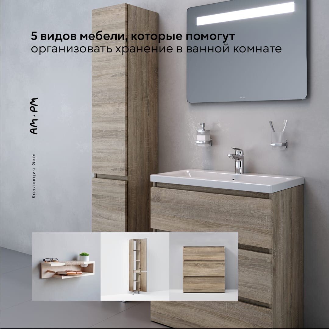 Мебель – основной акцент ванной комнаты, который делает ее стильной. Однако, стиль не равно функциональность. Какая мебель поможет наиболее эффективно организовать пространство и хранение? В ванной устанавливается мебель следующих видов: Шкафы и тумбы позволят разместить косметику, средства личной гигиены, уборочный инвентарь. Кроме того, в них легко замаскировать разводку труб. Зачастую в ванной комнате устанавливают раковину на одной ножке, что распределяет площадь в ванной нерационально. В то время как раковина или чаша, встроенная в тумбу, вполне эргономичны. Тумбы со встроенным умывальником превращают обычную раковину в функциональный предмет интерьера. Такие тумбы могут быть с выдвижными ящиками, распашными дверцами, полками. Корпус тумбы скрывает подводку канализации и воды. Не стоит забывать про один из лучших способов экономии места в ванной комнате – хранение вещей под раковиной! Устанавливая подвесную раковину, мы освобождаем место под ней: можно поставить корзину, табурет