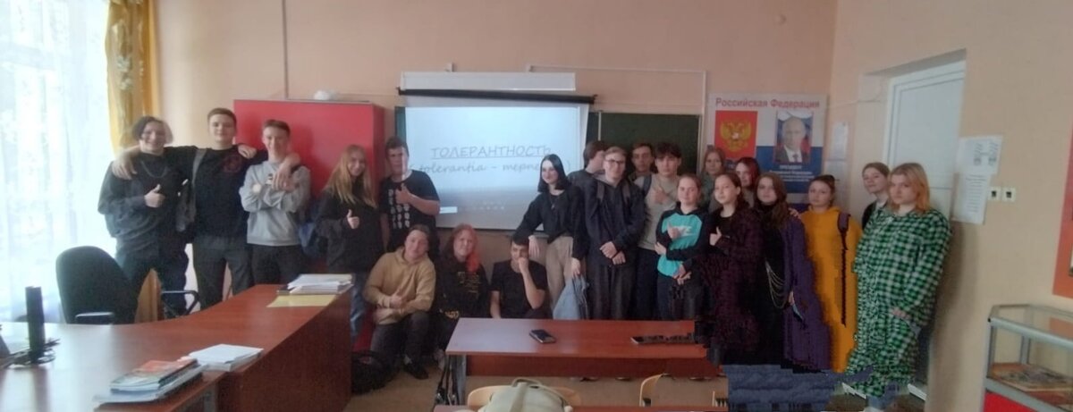 Вопрос о толерантности сейчас в центре внимания всего мира. Но на сегодняшний день мало говорится об этом. Понятие "толерантность" воспринимается не только детьми, но и взрослыми по-разному, но дать понять студентам, что такое толерантность, важно. 30 мая в группе 14 прошел классный час на тему: «Толерантность – путь к миру и личности». Классный час прошел под девизом: «Мы разные, но мы вместе!»