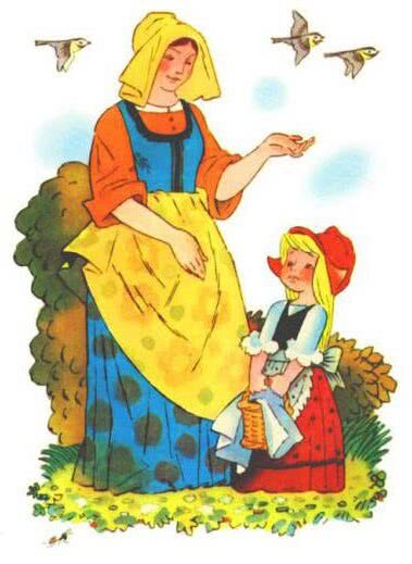 Жила-была маленькая девочка. Мать любила ее без памяти, а бабушка еще больше. Ко дню рождения внучки подарила ей бабушка красную шапочку. С тех пор девочка всюду в ней ходила. Соседи так про нее и говорили: