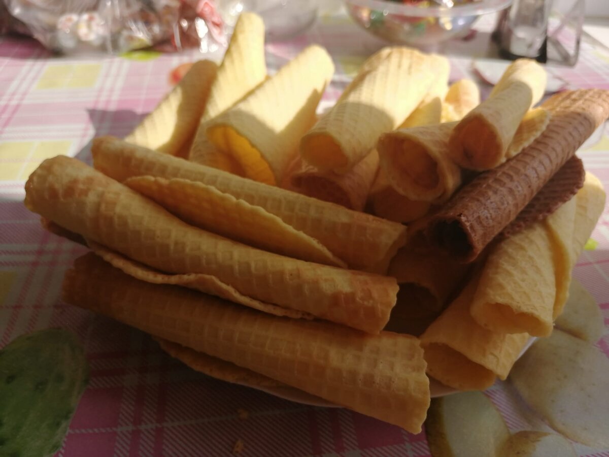 Ингредиенты: Яйца- 5 шт Сахар- 1 стакан Масло сливочное- 200 г Ванилин- 10 г Соль- щепотка Мука- 1 стакан Яйца взбить с сахаром и ванилином. Добавить растопленное масло, соль и муку. Хорошо перемешать. Выпекать в вафельнице. Можно сделать начинку в виде крема или вареной сгущенки. Вафли получаются как из детства.