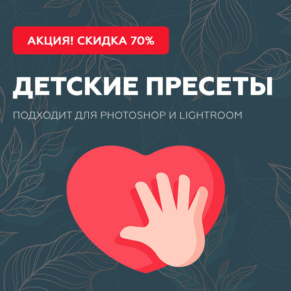 В этом посте я хочу рассказать о запуске АКЦИИ на набор пресетов для цветокоррекции детских фотографий, которые подходят для фотошопа и лайтрум. Подробнее на сайте набора - https://retouch-photo.ru/on/dpl/ Пресет - это файл с сохранёнными настройками цветокоррекции, где уже произведена вся работа с цветом и его можно применить в одни клик! Набор детских пресетов включает в себя 400 пресетов разной тематики: Летний набор / Осенний набор / Весенний набор / Зимний набор / Эффекты. Плюс видео инструкции по установке и работе с пресетами и 5 бонусных мини курсов! Сегодня 7 июня я запускаю распродажу данного набора всего на 4 дня до 10 июня где вы сможете купить набор по супер выгодной цене! Кликнув по ссылке ниже вы сможете посмотреть видео обзор детского набора пресетов + забрать свою копию набора: Заказать набор - https://retouch-photo.ru/on/dpl/ P.s. Участвуя в акции вы получаете потрясающий набор пресетов и помогаете существовать проекту для записи бесплатные уроки в будущем.