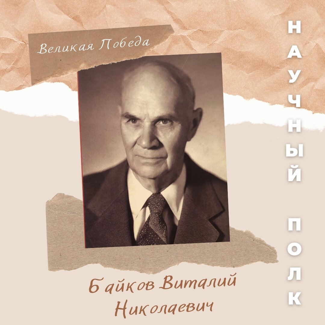 Байков Виталий Николаевич — крупный специалист в области исследования железобетонных конструкций, лауреат Государственной премии СССР, доктор технических наук, профессор, заведующий кафедрой железобетонных и каменных конструкций МИСИ (1963-1989 гг.) Виталий Николаевич большую часть своей сознательной жизни посвятил благородному делу обучения молодого поколения будущих инженеров-строителей искусству, столь нужному людям, — грамотно и прочно строить. Он закончил брянскую девятилетку, а после двух лет учебы в Брянском строительном техникуме поступил на работу в Проектное бюро Брянского Горкомхоза. Уже тогда он выбрал для себя профессию строителя, которой оставался верен до конца жизни. Поэтому в 1934 году Виталий Бойков едет в Москву и поступает в Московский инженерно-строительный институт (МИСИ). Вскоре Виталий Николаевич переводится во Всесоюзный заочный индустриальный институт и одновременно поступает на должность старшего техника-конструктора организации «Проектстройдеталь». Здесь на