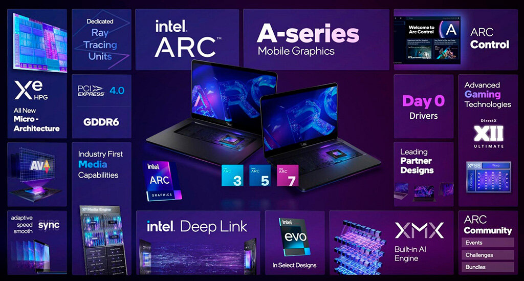 Пользователь китайской социальной Сети Weibo поделился первыми внятными игровыми тестами мобильной видеокарты Intel Arc A730M. Судя по результатам, речь идёт не про какой-то дремучий инженерный образец, а про готовый экземпляр в составе ноутбука, который вот-вот поступит в продажу. Но есть нюансы. Напомню, Arc A730M базируется на урезанной версии графического процессора Intel DG2-512, у которого из 512 EU-блоков активны 384, что эквивалентно 3072 потоковым процессорам. Подсистема памяти насчитывает 192-битную шину с 12-гигабайтным буфером GDDR6. Уровень мощности производители ноутбуков вольны настраивать самостоятельно в диапазоне 80-120 Вт. В Metro Exodus при разрешениях 1080p/1440p средний fps был на уровне 70/55 fps, в F1 2020 это 123/95 fps, а в Assassin’s Creed: Odyssey — 38/32 fps. Судя по этим цифрам, быстродействие Intel Arc A730M где-то между десктопными GeForce RTX 3050 и RTX 3060. Хотя результаты и неплохие, всё же не впечатляющие. Во-первых, мощность тестируемого образца н
