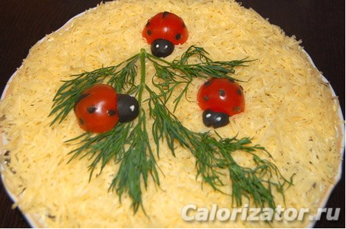 Как приготовить блюдо «Салат с курицей, грибами и орехами» 1. Куриное филе отварить в подсоленной воде, отварить и очистить яйца. 2. Грибы нарезать тонкими пластинами и обжарить на растительном масле. 3. Лук порезать кубиками, добавить к грибам и жарить 3-5 минут, по вкусу посолить. Выключить огонь и дать остыть. 4. Куриное филе и яйца порезать кубиком. 5. Орехи порубить. 6. Выложить слоем 1/2 часть курицы, смазать майонезом. 7. Выложить слоем 1/2 часть грецких орехов, смазать майонезом. 8. Выложить слоем 1/2 часть яиц, смазать майонезом. 9. Выложить слоем 1/2 часть грибов, смазать майонезом. 10. Натереть на мелкой терке сыр. 11. Выложить 1/2 часть сыра, смазать майонезом. 12. Все слои повторить. Очень сытный салат. На каждый день и на праздник. Приятного аппетита! Ингредиенты рецепта «Салат с курицей, грибами и орехами»: · Филе куриное - 400 гр. · Яйцо куриное - 4 шт. · Шампиньоны - 400 гр. · Сыр - 150 гр. · Лук репчатый (средний) - 2 шт. · Грецкие орехи - 100 гр. · Соль (по вкусу) -