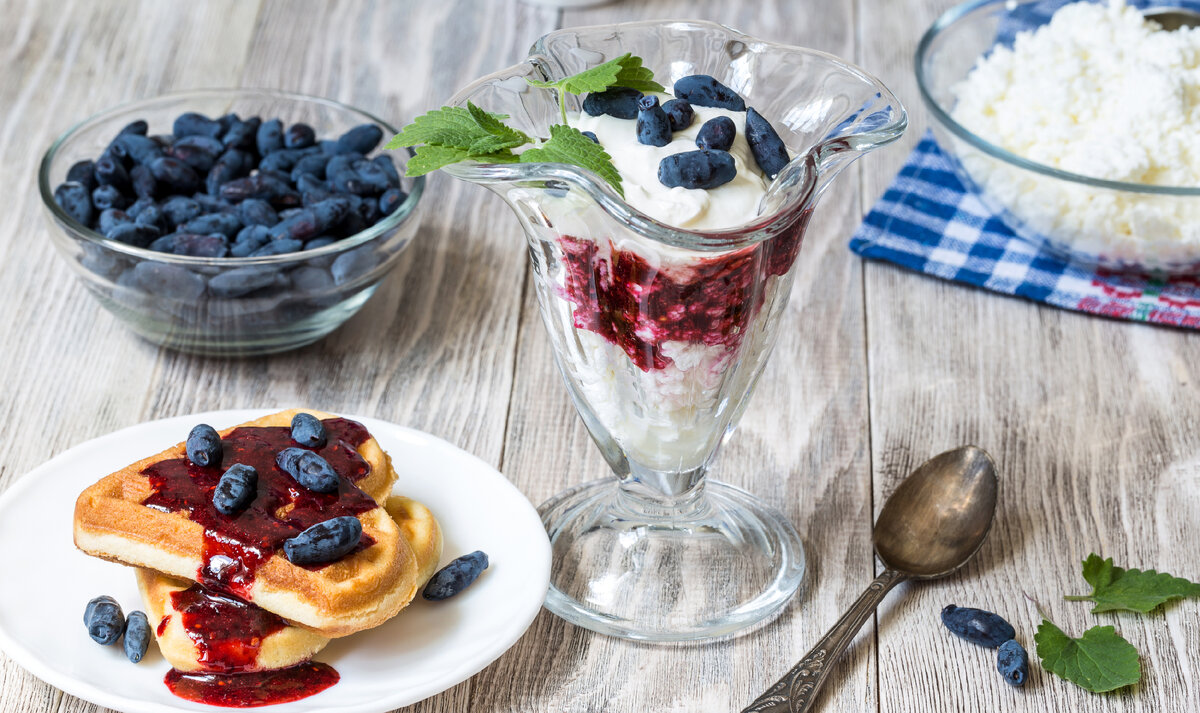 Жимолость – ягода весьма нежная и чувствительная к кулинарной обработке. В кулинарном и вкусовой отношении она, конечно, уступает клубнике, черешне, смородине, клюкве. В то же время жимолость так полезна и в плане сезона настолько обгоняет другие летние ягоды, что стоит отнестись к ней максимально бережно и внимательно. Жимолость можно перетереть с сахаром – так удастся сохранить её витамины и сгладить кислый вкус. Из жимолости можно приготовить джем, желе, с ней получится хороший кисель, мороженое, она пойдёт и в выпечку, например, в начинку для открытого пирога. Кроме того, с этой ягодой можно сделать салат, сочетая её с мягким сыром и свежей пряной зеленью и листовыми салатами. Мусс из жимолости Для приготовления 2-4 порций нужно: Корзиночки с муссом из жимолости Для приготовления 8-10 штук нужно: Для песочного теста: Варенье из жимолости Для приготовления примерно 1,7 л варенья нужно: Жимолостный мёд пчёлы собирают с татарской жимолости, которая растёт в Поволжье и Сибири. Он свет