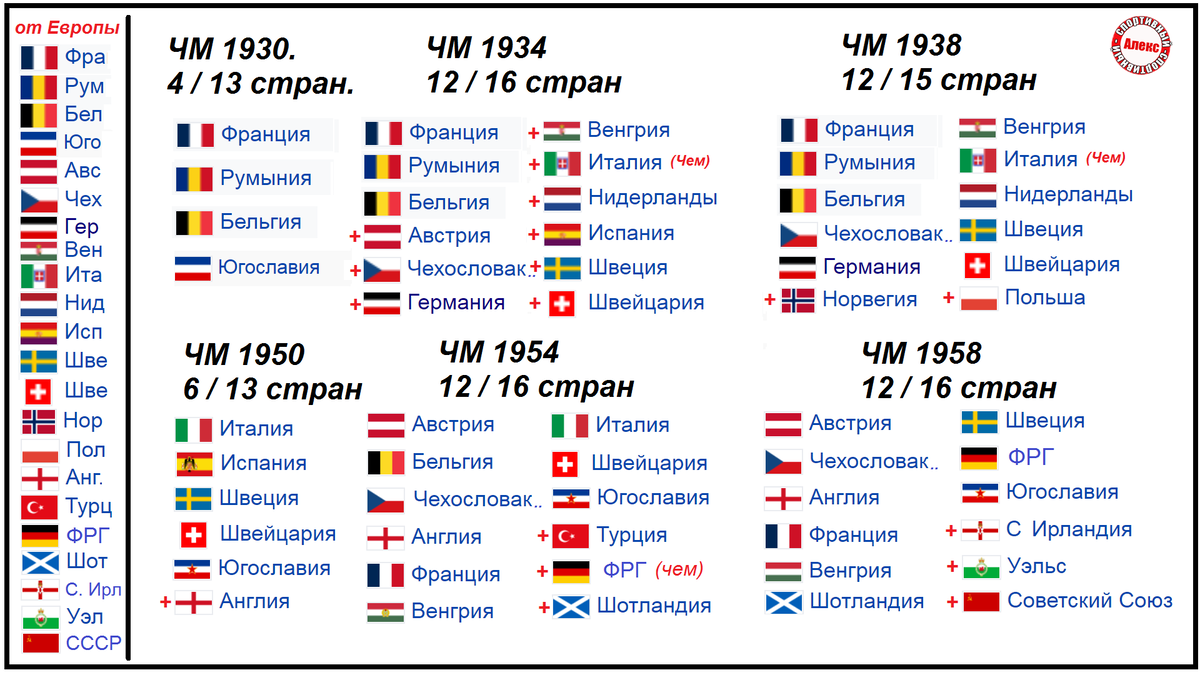 Таким образом, на чемпионатах мира выступало 38 европейских команд. Если выпуск понравился – поставьте класс. До встречи на «спортивном».
