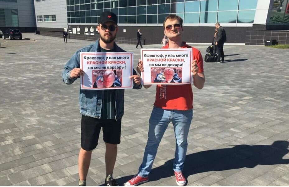 Двое жителей Калининградской области устроили пикет по случае отъезда посла Польши в России Кшиштофа Краевски, пишет Клопс. Дипломат прилетел в регион 1 июня. На плакатах местных жителей можно было прочитать следующее: «Кшиштоф, у нас много красной краски, но мы не дикари». При этом перед отлетом посол передал пожелания калининградцам. «Я надеюсь, что вы подумаете о будущем, ознакомитесь с фактами. Изучайте все, что важно для истории наших стран и будьте здоровы. До свидания!» — сказал Краевски. Ранее неизвестные облили красной краской посла России в Польше Сергея Андреева во время торжественной церемонии на кладбище советских военных в Варшаве.