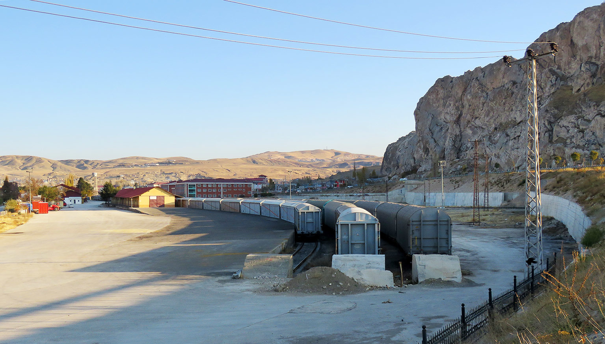 Я ходил сюда, оставив Олю на близлежащем автовокзале, перед самым отъездом, да и поезд - не лучший способ добраться в Ван: автобусы и долмуши сюда ездят исправно, паром возит пассажиров в дополнение к товарнякам, а пассажирские поезда исчерпываются "Трансазиатским экспрессом" Анкара - Тегеран раз в неделю, который к тому же ещё и отменяют периодически как бы насовсем. Я даже не дошёл до вокзала - судя по фото из википедии, он тут предельно уныл, и с момента постройки в 1971 году, когда был слегка похож на вокзалы Узбекистана, стал ещё унылее: Сама железная дорога из Турции в Иран прокладывалась в 1965-72 годах, замкнувшись Ванской переправой, на английские деньги. Такова уж специфика Турции, что начиная с 1850-х годов активнее всего на рельсы её ставили англичане и немцы, нуждавшиеся в магистралях для вывоза руд или переброски войск. Сами турки свою железнодорожную сеть особенно активно развивали в 1920-40-е годы, а с 1960-х переняли американский опыт, отдав бюджеты автодорогам. Тран