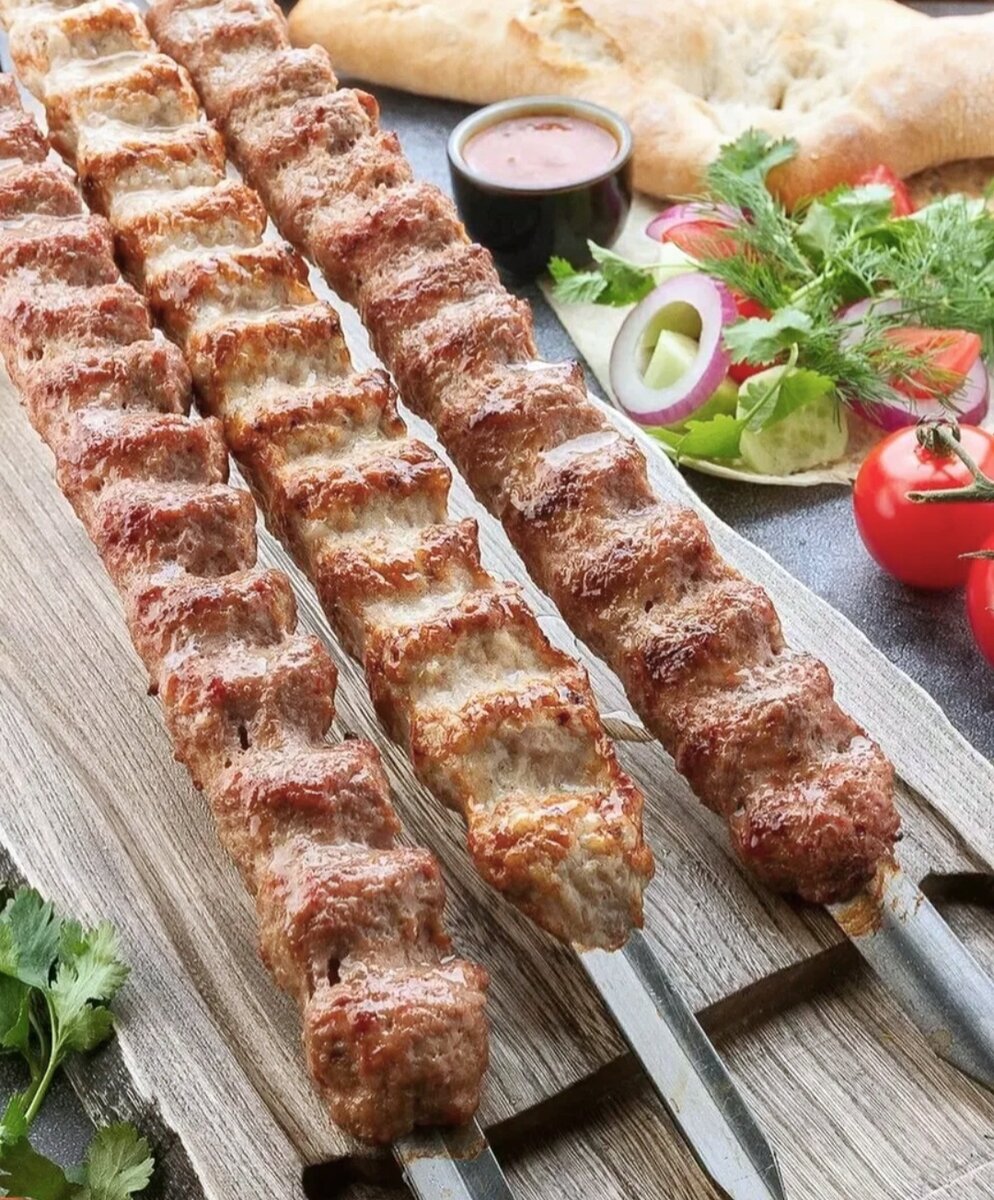 Люля-кебаб (кебаб по-персидски «жареное мясо») - арабское блюдо, продолговатая котлета, обжаренная на шампуре. Традиционный люля-кебаб готовят из баранины и репчатого лука. При этом баранина должна быть довольно жирной, и лука потребуется много. В отличие от котлет, в люля-кебаб не кладут ни яиц, ни хлеба. К мясу с луком добавляют лишь специи: перец, базилик, кинзу, чеснок. Для приготовления люля-кебаба баранину нужно пропустить через мясорубку и очень долго рзаминать руками, с силой бросая на стол. Фарш должен стать вязким, чтобы держался на шампурах и не разваливался на мангале. Очень важно хорошо вымесить фарш – от этого зависит еще и то, насколько нежным будет мясо. Люля-кебаб жарят над углями без пламени. К столу люля-кебаб подают горячим и непременно с лавашом. Если вы приготовили люля-кебаб дома, в духовке, то он будет на таким ароматным, как если бы он был сделан на углях. Но этот недостаток можно компенсировать соусами, например, греческим дзадзики или индийской пастой кар