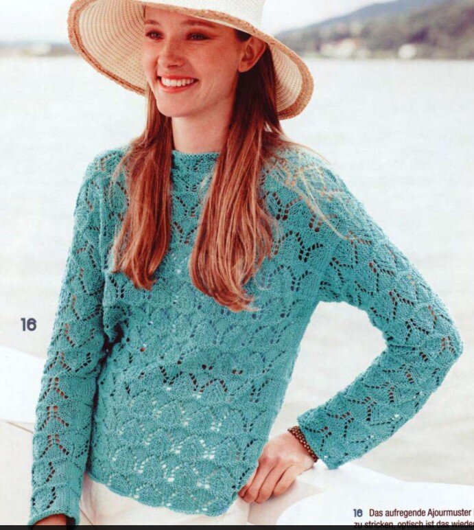 Всем рукодельный привет!! Продолжаю делиться с вами модельками запавшими мне в душу, может они и вам очень понравятся!! У нас наконец-то потеплело ... и я задумалась о таком , более легком ажурном пуловере ... Прошерстила свои архивы ... и нашла ЕГО!!! Мне очень нравится этот пуловер - и модель, цвет и узор!! Та-дам !! Для этого пуловера понадобится( размеры 42\44): Пряжа 100% хлопок (500\550)гр. 125м\50гр Спицы № 4 Все детали пуловера вяжутся 1-м узором! Предлагаемая плотность 10х10 = 20 пет х30 рядов #ажурный пуловер спицами