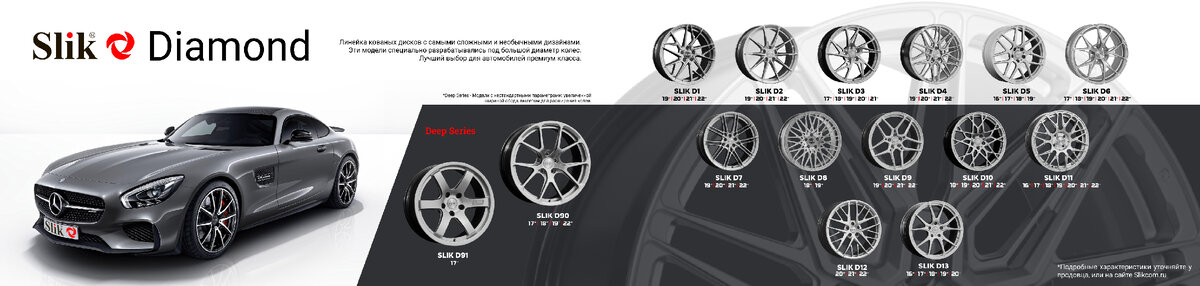 В этой серии объединены всеми любимые первые дизайны компании SLIK и модели с малым типоразмером от 14'' до 17''. В линейку также вошли модели для коммерческого использования и спортивные дизайны. Бессмертная классика отлично подходит для автовладельцев, которые хотят снизить вес, улучшить динамику и управляемость автомобиля.