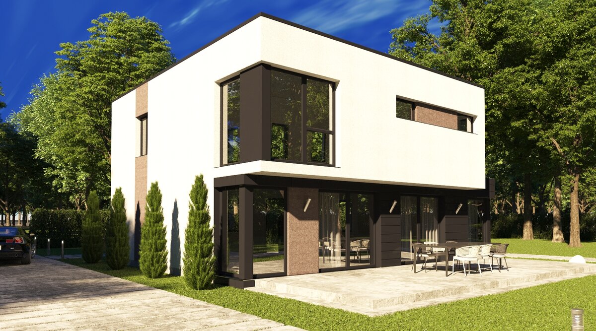 Минимализм — яркий современный стиль, привлекающий лаконичными геометрическими формами, идеальными пропорциями и нейтральными цветами. В чем особенность минимализма как архитектурного стиля? Упрощение форм Четкие линии — вертикальные и горизонтальные и плоские поверхности. Основные фигуры это прямоугольник и круг. Допускаются мягкие изгибы, но не спирали. Плоская крыша Плоская крыша, на которой можно смонтировать световые люки, солнечные батареи, обустроить террасу, или смотровую площадку. Отделка Основное правило минимализма — минимум текстур. Чаще всего выбирается штукатурка, окрашенная в нейтральную гамму. Для контраста используют декоративные панели под дерево, клинкерную (кирпичную) плитку, декоративный камень. Свет Акцент на естественное освещение, которое должно подчеркнуть фактуру используемых материалов. Минимум межкомнатных перегородок и максимально большие окна способствуют тому, что помещение наполняется светом. Функциональность. Лаконичность и простота внутреннего пр