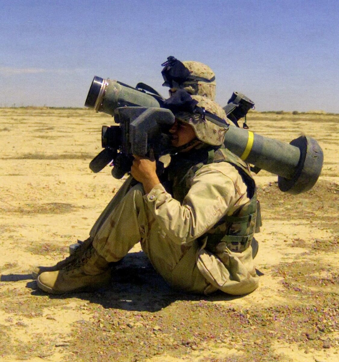 Носимый ПТРК FGM 148 «Джавелин» предназначен для поражения основных танков и бронированных машин, а также бункеров, зданий и зависших вертолетов противника на дальностях до 2500 м.