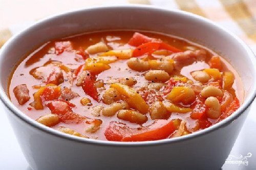 ИНГРЕДИЕНТЫ: 200 грамм фасоли 50 грамм картофеля Соль Специи 50 грамм лука 70 грамм моркови 300 грамм говядины или свинины 1 большой помидор и, по желанию, 1 сладкий перец ПРИГОТОВЛЕНИЕ: Налейте в мультиварку масло растительное. Морковку, помидор (и сладкий перец) и лук измельчите так, как вам больше нравится и добавьте в мультиварку. Обжаривайте на режиме "выпечка" на протяжении 10 минут. За это время овощи немного подрумянятся и выделят сок. Эти десять минут потратьте на подготовку мяса. Нарезать его следует небольшими кубиками. Добавьте его к овощам. Тщательно промытую фасоль отправьте в мультиварку. Ее желательно предварительно замочить на часов 10-15 (с добавлением 1 ч.л. соды, чтобы убрать "побочные эффекты" от поедания бобовых;). Помытую и очищенную картошку нарежьте так, как вы больше всего любите. Залейте водой все ингредиенты до половины чаши. Если любите более жидкий суп, налейте больше воды. Выберите режим "Суп" или "Тушение" на полтора часа. Если вы используете консервиро