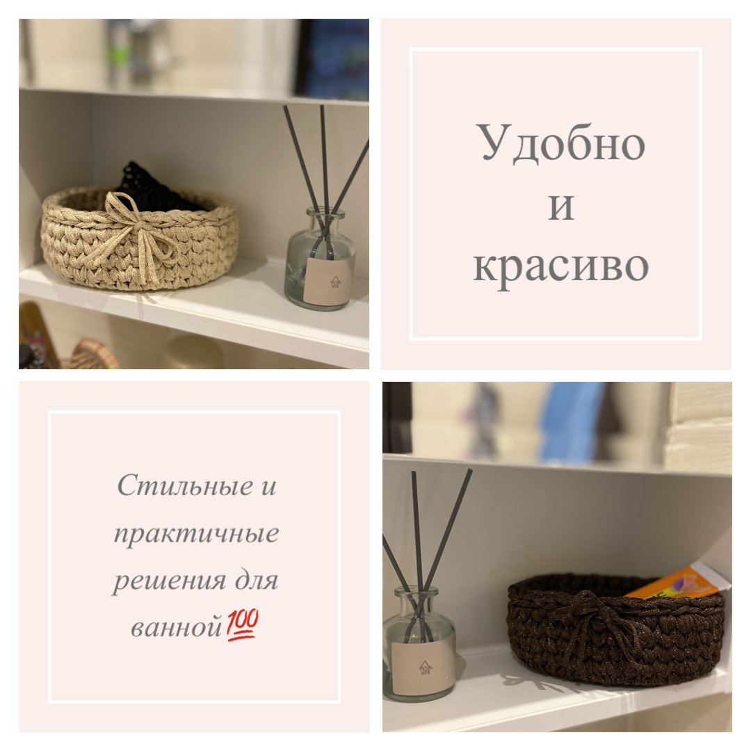 В такие небольшие корзиночки поместилось довольно много всего: крема, резинки, заколки😅 Игра глитера, входящий в состав полиэфирного шнура, при включённом освещении - завораживает😍