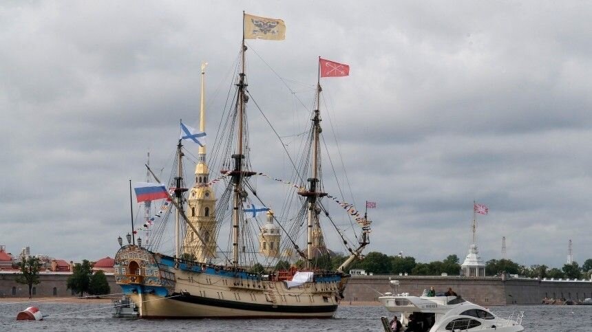 Масштабное мероприятие приурочено к 350-летию Петра I, основателя Северной столицы России. Фото: ANATOLY MALTSEV / ТАСС; 5-tv.ru В Неву зашел огромный парусник «Полтава». Фрегат с изящным декором — точная копия корабля, к строительству которого приложил руку сам Петр I. Та «Полтава» участвовала в боевых походах, нынешняя радует туристов и на правах почетного гостя стоит на невском рейде в День Военно-морского флота. На этот раз в Неву корабль вышел гораздо раньше, чтобы отметить 350-летие Петра. Невероятные для деревянного корабля габариты впечатляют и по нынешним временам. Чтобы пришвартоваться на невской набережной, современной команде пришлось решать те же проблемы, что и предшественникам более трех веков назад. «Даже во времена Петра, когда настоящую „Полтаву“ спустили на воду, они столкнулись с той же самой проблемой: взяли за ноздрю, пытались выволочь в Невскую губу, взгромоздили на мель, поняли, что работать не будет, вернули обратно, построили специальное устройство, уменьшили