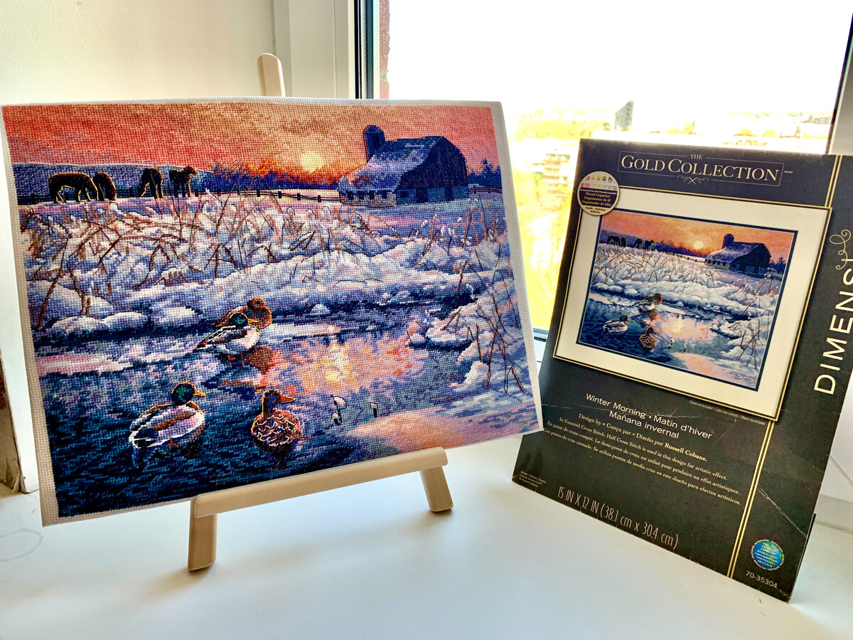 Начала быстро вышивать и пока отложила. Дизайн мне очень нравится. Решила не менять на нем основу Аиду 16 каунта. Вышиваю, как есть.