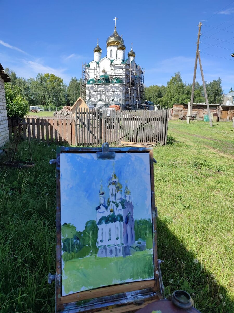 Конечно же, в духовно- просветительском, на территории храма в честь Богоявления Господня и св. прав. Иоанна Кронштадтского. Вот он: Пленэ́р (от французского en plein air — «на воздухе») — термин, обозначающий изображение на картине всего богатства изменений цвета, обусловленных воздействием солнечного света и окружающей атмосферы. Пленэрная живопись подразумевает создание картин не в мастерской, а на природе, которая служит основой постижения натуры в её естественном освещении. Художники, юные и опытные, прибыли к нам в Усть-Пристань по приглашению отца Никандра (Речкунова), который расширяет сотрудничество Духовно-просветительского центра со сферой образования. Едва мы распрощались со студентами - практикантами АГИКа, как снова - Добро пожаловать - встречаем живописцев под предводительством Владимира Петровича Максименко! Скоро-скоро будут подробности, не успеваю описывать все события! За инициативным отцом Никандром трудно угнаться. И это прекрасно - ведь, благодаря нашему наст