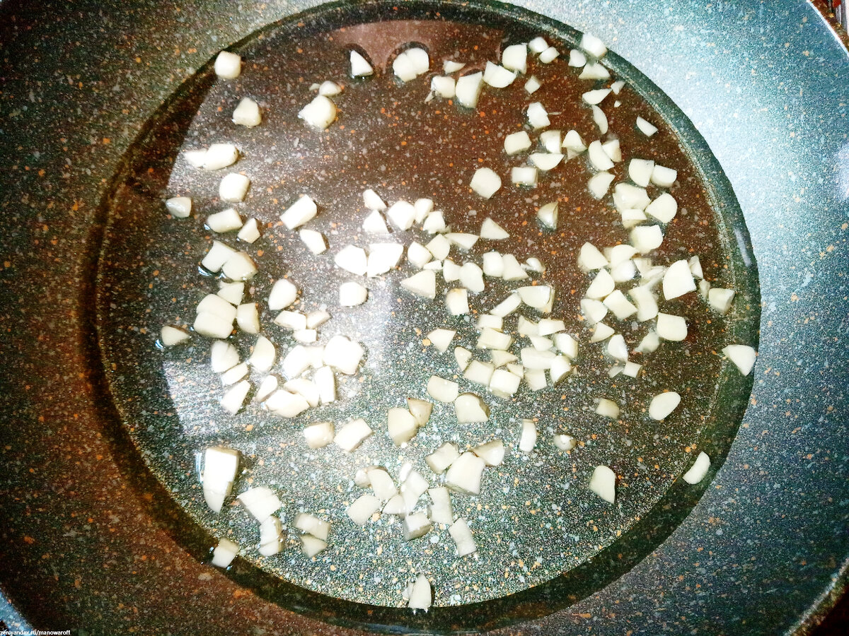 Сегодня у нас очередное блюдо из серии "как за 5 минут приготовить что-то из ничего". Этот супчик готовится из самых обычных продуктов и за считанные минуты (если, конечно, все необходимые ингредиенты находятся в стадии готовности), поэтому тайцы делают его на завтрак, используя продукты, недоеденные за ужином, в частности, отваренный рис. Я же не привык завтракать супами, так что буду готовить его на обед. Необходимое количество ингредиентов я указывать не буду - кто-то любит суп погуще, кто-то пожиже. Кому-то подавай побольше креветок, кому-то риса. Так что подбирайте под свои вкусы. Для приготовления супа нам потребуется: *Креветки можно использовать как большие, так и мелкие салатные. А можно вообще взять курицу, мясо, рыбу или тофу. Для заправки супа нам понадобится (из расчета на две порции): Для подачи: Для начала отвариваем рис и даем ему подсохнуть в течение пары часов, периодически его перемешивая. Затем готовим жареный чеснок и чесночное масло. Для этого головку чеснока наре