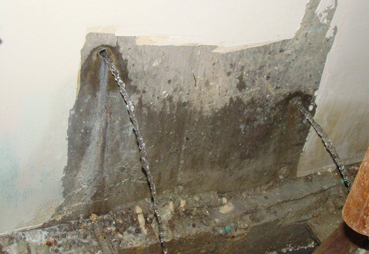 Повышение грунтовых вод и осадки становятся причиной появления воды в подвалах, на подземных парковках или в подземных гаражах. Вода быстро проникает в конструкцию через трещины, швы бетонирования, не уплотнённые участки бетона. Этому подвержены как новые, так и старые конструкции. В результате ваш помещение превращается в импровизированный фонтан, и вам необходимо в кротчайшие сроки избавиться от образовавшихся течей. Течи из которых наблюдается активный приток воды через их полость принято называть напорными. Основными средствами для устранения таких течей в современном строительстве стали специальные быстросхватывающиеся гидроизоляционные материалы — гидропломбы. Для ликвидации напорных течей рекомендуется использовать гидропломбы Пенеплаг или Ватерплаг системы Пенетрон. Особенность материалов — быстрое время схватывания. В их состав входят определённые химические добавки, смешанные с кварцевым песком и специальным цементом. При попадании в воду Пенеплаг и Ватерплаг расширяются и за