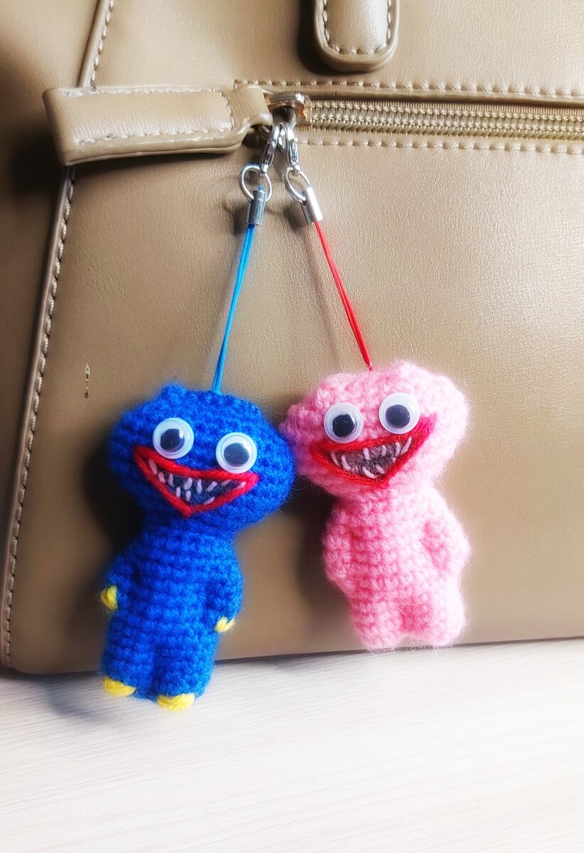 Хагги Вагги брелок крючком Условные обозначения: возд.п - воздушная петля сбн - столбик без накида пр - прибавка уб - убавка 2 -я уб - три петли вместе (убирается 2 столбика) р - ряд 7 возд.п Во вторую от крючка 1р - пр, 4 сбн, 4 сбн в одну петлю, 4 сбн, пр = 16 2-6р - 5 рядов 16 сбн Петля смещения 7р - 3 сбн в одну петлю, 6 сбн, 3 сбн в одну петлю, 3 сбн в одну петлю, 6 сбн, 3 сбн в одну петлю = 24 8р - 24 сбн 9р - уб, 8 сбн, 2 уб, 8 сбн, уб = 20 10р - 20 сбн 11р - уб, 6 сбн, 2 уб, 6 сбн, уб = 16 12р - 16 сбн 13р - уб, 4 сбн, 2 уб, 4 сбн, уб = 12 14р - пр, 4 сбн, 2 пр, 1 сбн, 2 пр, 1 сбн, пр = 18 15р - пр, 6 сбн, 2 пр, 8 сбн, пр = 22 16р - пр, 8 сбн, 2 пр, 10 сбн, пр = 26 17р - пр, 10 сбн, 2 пр, 12 сбн, пр = 30 18-20р - 3 ряда 30 сбн Петля смещения 21р - 2-я уб, 8 сбн, 2 2-е уб, 10 сбн, 2-я уб = 22 22р - 2-я уб, 4 сбн, 2 2-е уб, 6 сбн, 2-я уб =14 Сложить, провязать две стороны вместе 6 сбн Обратите внимание! Лицо, там, где больше столбиков между убавками. Выполнить скво