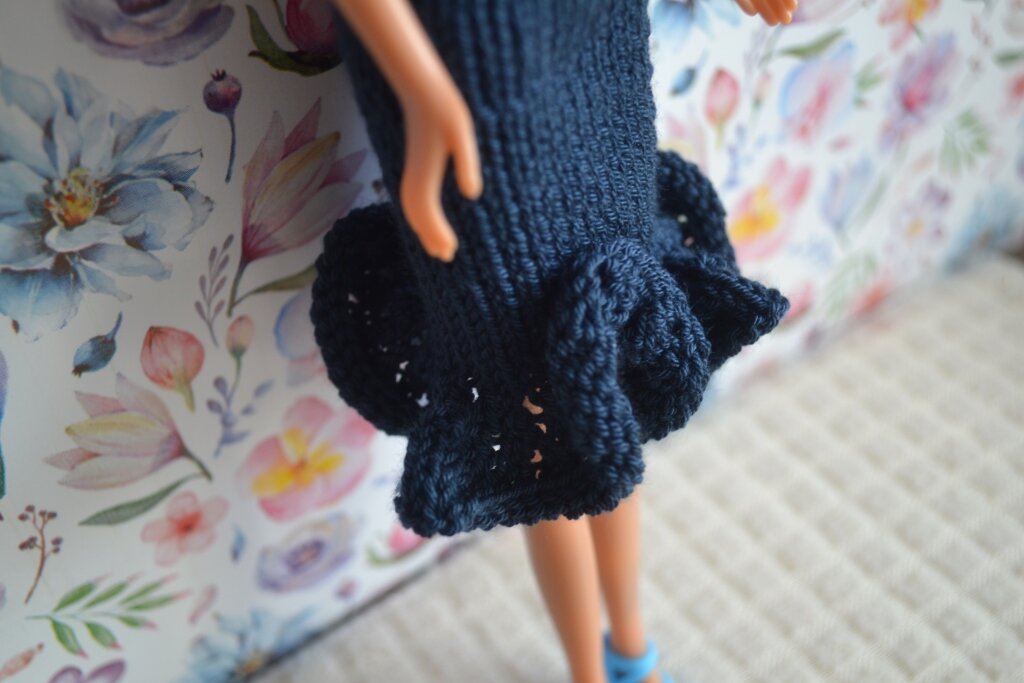 2. Юбка прямая с ажурным воланом спицами для Барби. Попетельное описание для начинающих