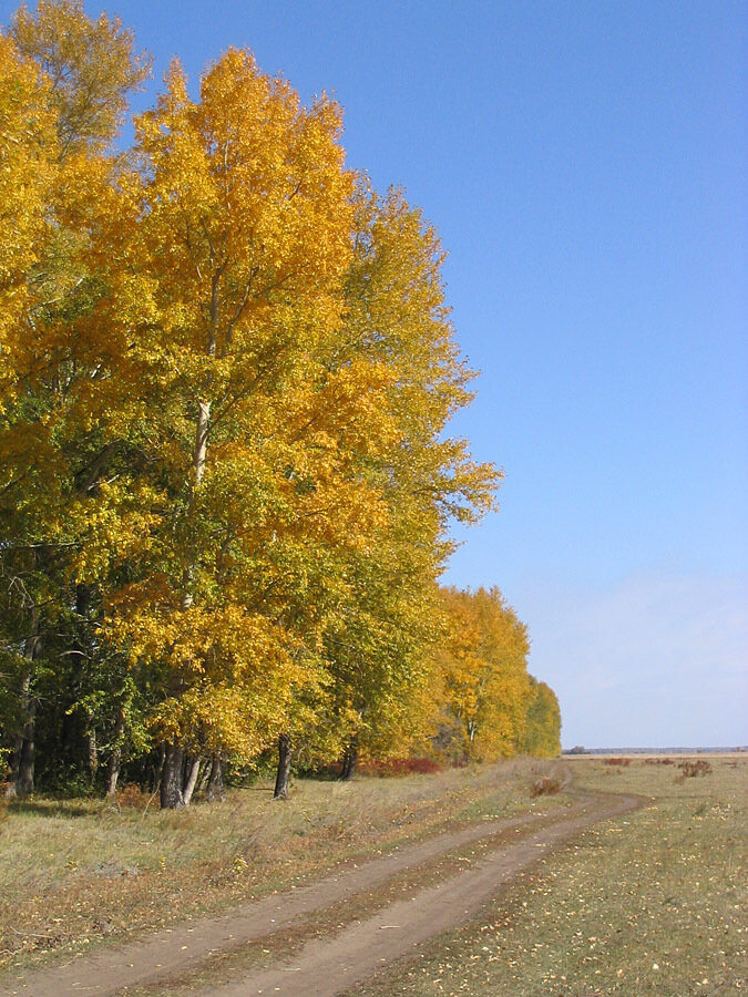 Меж посадок берёз и осин.