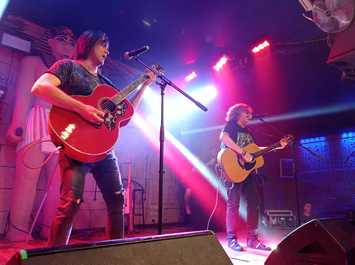 В назначенный для саунд-чека час, я был в клубе-ресторане "Фараон", где проходил концерт, с музыкальными инструментами. С огромным удовольствием встретились с Владимиром Воленко и Натальей Шоколадкиной, пообщались. Посмотрел святая святых, саундчек! И даже отснял слова благодарности.