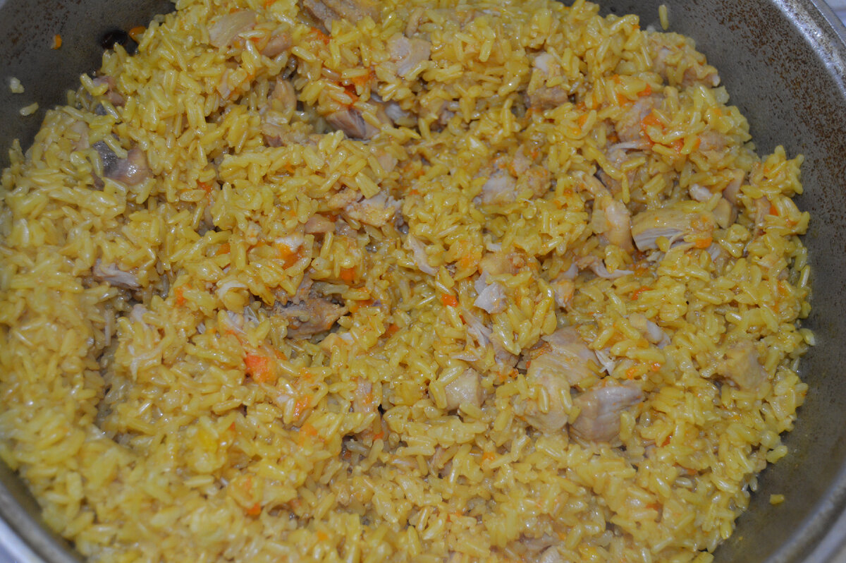 Приветствую всех любителей вкусной еды! Сегодня я буду готовить плов из бурого риса. Для этого понадобятся: рис бурый, филе куриного бедра, приправа для курицы, морковь, лук, куркума, приправа для плова, соль, подсолнечное масло, перец чёрный молотый. В разогретую жаровню наливаем подсолнечного масла, кладём филе куриного бедра, солим, перчим и добавляем приправу для курицы. Берём пару больших морковок. Нарезаем морковь соломкой. Нарезаем большую луковицу. Промываем бурый рис в холодной проточной воде. К обжаренному мясу добавляем лук с морковью, тушим на умеренном огне. Добавляем бурый рис и куркуму, солим, перчим, добавляем кипячёной горячей воды на 2 см выше риса и варим до полного испарения воды. После выключения газа под закрытой держим 20 минут. Всем приятного аппетита!