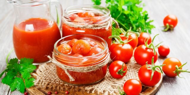 4 полезных совета 1.Ингредиенты в каждом рецепте рассчитаны на банку объёмом 3 л. Количество помидоров может меняться в зависимости от их размеров. Главное — плотно утрамбовать овощи и залить жидкостью до самого края банки. 2.Перед приготовлением все овощи и зелень надо хорошенько помыть, а банки и крышки — простерилизовать. 3.Чтобы помидоры не лопались при консервации, заранее сделайте зубочисткой несколько проколов у попок овощей. 4.После закатки необходимо перевернуть банки, накрыть чем-то плотным и тёплым и остудить. Классический рецепт вкуснейших ароматных помидоров. Ингредиенты 6 веточек петрушки; 8 зонтиков укропа; 3 зубчика чеснока; 3 сушёных лавровых листа; 3 бутона сушёной гвоздики; 9 горошин душистого перца; 1½–2 кг помидоров; примерно 1¹⁄₂ л воды; 2½ столовой ложки соли; 100 г сахара; 1½ столовой ложки уксуса 9%. Приготовление На дно банки выложите половину петрушки, укропа и нарезанного пластинками чеснока. Добавьте лаврушку, гвоздику и перец. Утрамбуйте помидоры и полож