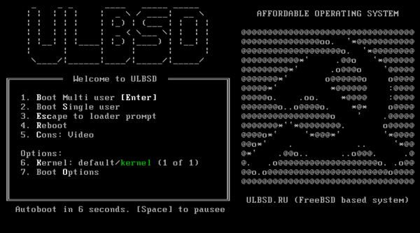 Классика BSD-систем - это псевдографика на начальном экране, в UL.BSD традиции сохраняются, нас встречает серп и молот.