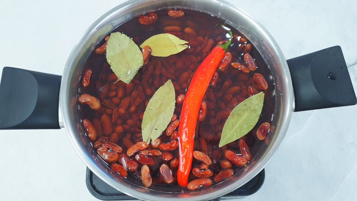 Как готовить: 450 граммов красной фасоли высыпаем в кастрюлю. И заливаем водой. Ставим огонь, после закипания воду сливаем. В кастрюлю вливаем 1,5 литра воды. Добавляем целый перец чили и 4 лавровых листа. Накрываем крышкой и варим 2 часа. 3 луковицы нарезаем на мелкие кубики и обжариваем на растительном масле. Добавляем 1 столовую ложку томатного соуса и перемешиваем. Когда фасоль сварится, вынимаем перец и лавровый лист. Сливаем из кастрюли жидкость в миску. Добавляем в жидкость от варки столовую ложку соли, треть чайной ложки перца, чайную ложку кориандра. 6 зубчиков чеснока измельчаем и также добавляем в соус и перемешиваем. Часть сваренной фасоли мнем картофелемялкой. Вливаем соус и перемешиваем. Перекладываем фасоль в сковороду с обжаренным луком. Перемешиваем и вливаем 150 мл воды. Вновь перемешиваем и готовим минут 7 под крышкой. Пучок петрушки мелко нарезаем и посыпаем зеленью готовое блюдо. Ура, #фасоль #вместО мяса готова! Приятного аппетита! #рецепт - 450 г фасоли