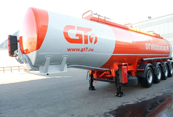GT7 является производителем спецтранспорта для транспортировки светлых нефтепродуктов. Спецтехника выполнена в виде чемоданного или горизонтально цилиндрического резервуара. Заполнение резервуара осуществляется через заливной люк и при помощи насоса. Слив топлива может осуществляться как самотеком, так и через специальный насос. Данный тип спецтехники в базовой комплектации не оборудован насосами, поэтому для заливки нефтепродуктов требуется использование стороннего насоса. Однако даже в такой комплектации имеются шаровые краны, донные клапаны, сливные рукава и быстроразъемные соединения. Описание Полуприцеп-цистерна GT7 – идеальное решение для отечественных дорог. Он с легкостью выдерживает значительную нагрузку даже с учетом необходимости езды по некачественному дорожному полотну. Сердцем спецтехники является емкость с высокими теплоизоляционными способностями, которая идеальна для перевозки и хранения продуктов нефтепереработки. Для производства наружного сосуда используется сталь м