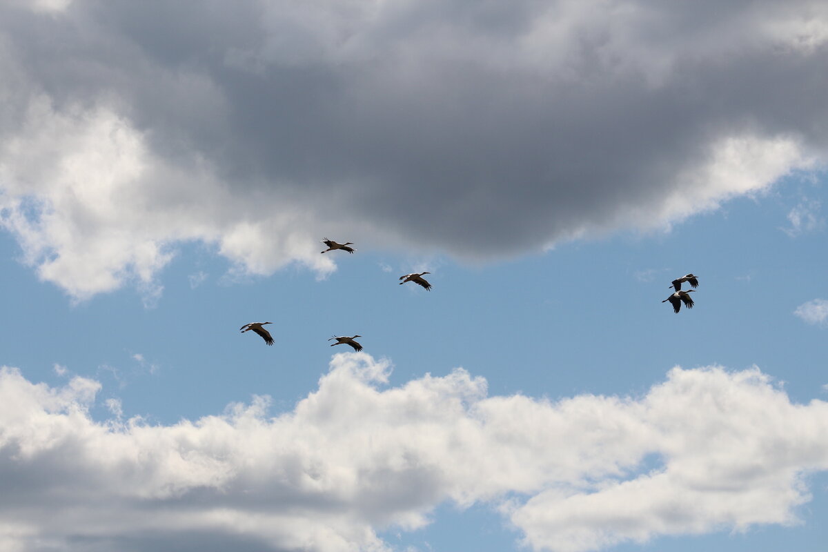 Недавно гуляла рядом с сельскохозяйственными полями и увидела в небе такую картину: 6 белых аистов! Я хоть и проводила каждые летние каникулы в Беларуси, где этот вид встречается повсеместно, а стаю аистов ни разу ещё не встречала. Часто вижу, как в небе кружит одна-две птицы, но и только. А эта компания к тому же явно летела куда-то по делам. В интернете я нашла множество фото стай белых аистов, но вот информации о способах миграции не обнаружила. Только что летят они днём, а в стаи сбиваются в местах зимовок. Так что если вы знаете то, как именно белые аисты мигрируют (по одиночке или стаей), дайте, пожалуйста, знать. А рядом проплывающей мимо меня группой в перьевых боа стоял себе спокойно в сторонке вот такой одиночный товарищ: Видимо, посмотрел он на группу весёлых друзей и решил время зря не терять: тоже поднялся в небо через пару минут. Аистом в Беларуси меня, конечно, не удивишь, а вот встретить 7 штук в одном месте - такое хочется запомнить :) Приглашаю подписаться на мой кана