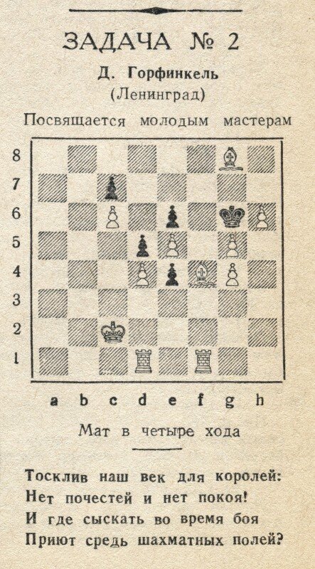 Не такая уж сложная эта задача на мат в 4 хода, но подумать конечно надо.