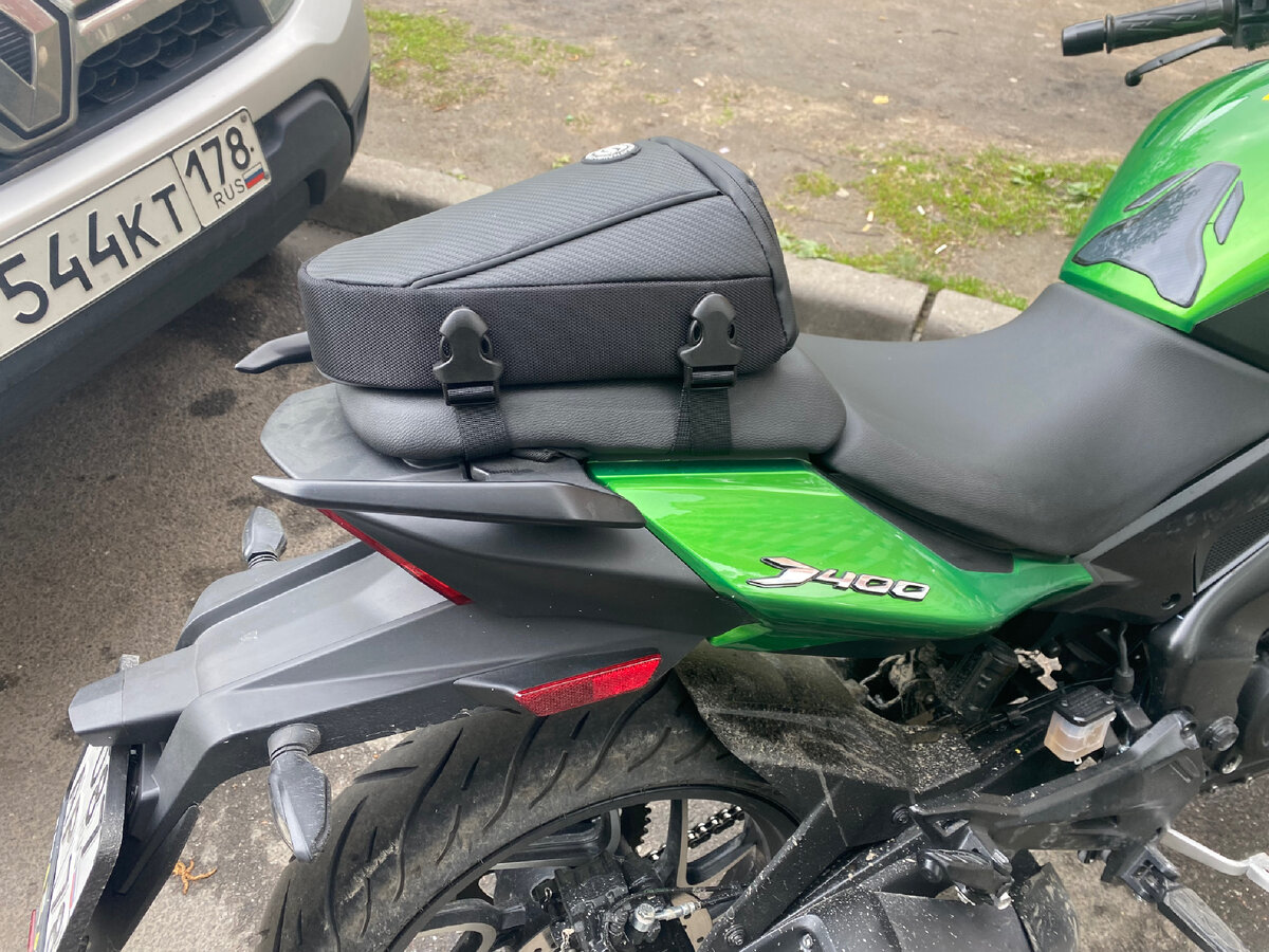 Всем привет! Если вы, так же как и я, противник всяких огромных кофров, сумок на бока мотоцикла и тп, а рюкзак с собой тупо лень таскать из за бутылки воды, документов и пачки сигарет, то этот пост будет вам полезен. Чаще всего езжу «на легке», но приходится возить с собой рюкзак, который с плотной кожаной куртки проблематично снять и нацепить обратно, доставая воды попить или кошелек, что бы на заправке топливо оплатить. Тут то, для таких как я, и придумали наши восточные экономические партнеры чудесную сумку на заднее сиденье мотоцикла. Сумка прекрасно повторяет форму пассажирского сиденья, практически любого городского нейкеда, при этом выглядит аккуратно, и вмещает в себя все, что вам потребуется в небольшом прохвате по городу и близлежащих районах области. Я даже засунул литрушку масла вилочного, для эндуро мотоцикла, которую купил, пока катался. И места еще осталось предостаточно! Сумка крепится к сиденью на защелки, и легко снимается с сиденья, при этом на ходу держится кре