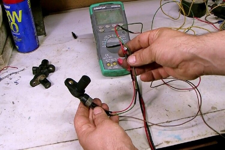 Проверять датчик положения распределительного вала, применяя мультиметр, довольно просто. Диагностику проводят поэтапно. Сначала тестер переключают в режим измерения напряжения до 20 В, потом включают зажигание, не заводя машину. Мультиметром проверяют, поступает ли питание к измерительному прибору. Отсутствие напряжения вызывают такие причины: