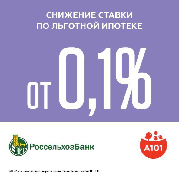 ГК «А101» и Россельхозбанк снизили ставку по ипотеке для наших клиентов до рекордно низкого уровня!