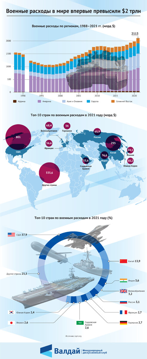 Мировые военные расходы продолжали расти в 2021 году, достигнув рекордного уровня в 2,1 триллиона долларов. Это седьмой год подряд, когда военные расходы увеличивались. #военные расходы #милитаризация