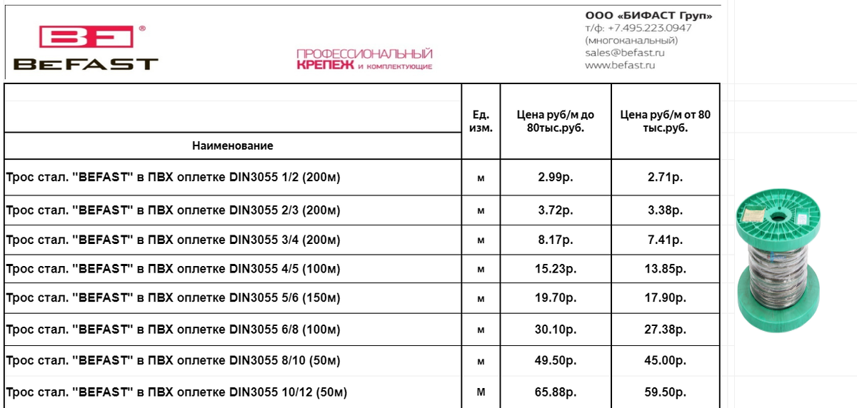 НАЗОВИТЕ МЕНЕДЖЕРУ КОДОВОЕ СЛОВО "ДЗЕН" ПОЛУЧИТЕ ЕЩЁ 5% СКИДКУ НА ВАШ ЗАКАЗ! Время и срок акции уточняйте по многоканальному телефону 8 800 350-50-96 Канаты стальные ГОСТ Трос уличный высокопрочный Трос стальной, покрытие цинк, в оплетке ПВХ, DIN 3055 Трос для растяжки стальной, покрытие цинк, DIN 3055 BeFAST™ - Контактная информация Телефоны: +7 495 223-09-47 8 800 350-50-96 > +7 (495) 225-08-50 (многоканальный) Общие вопросы: mail@befast.ru Отдел продаж: +7 495 223-09-47 доб. 5