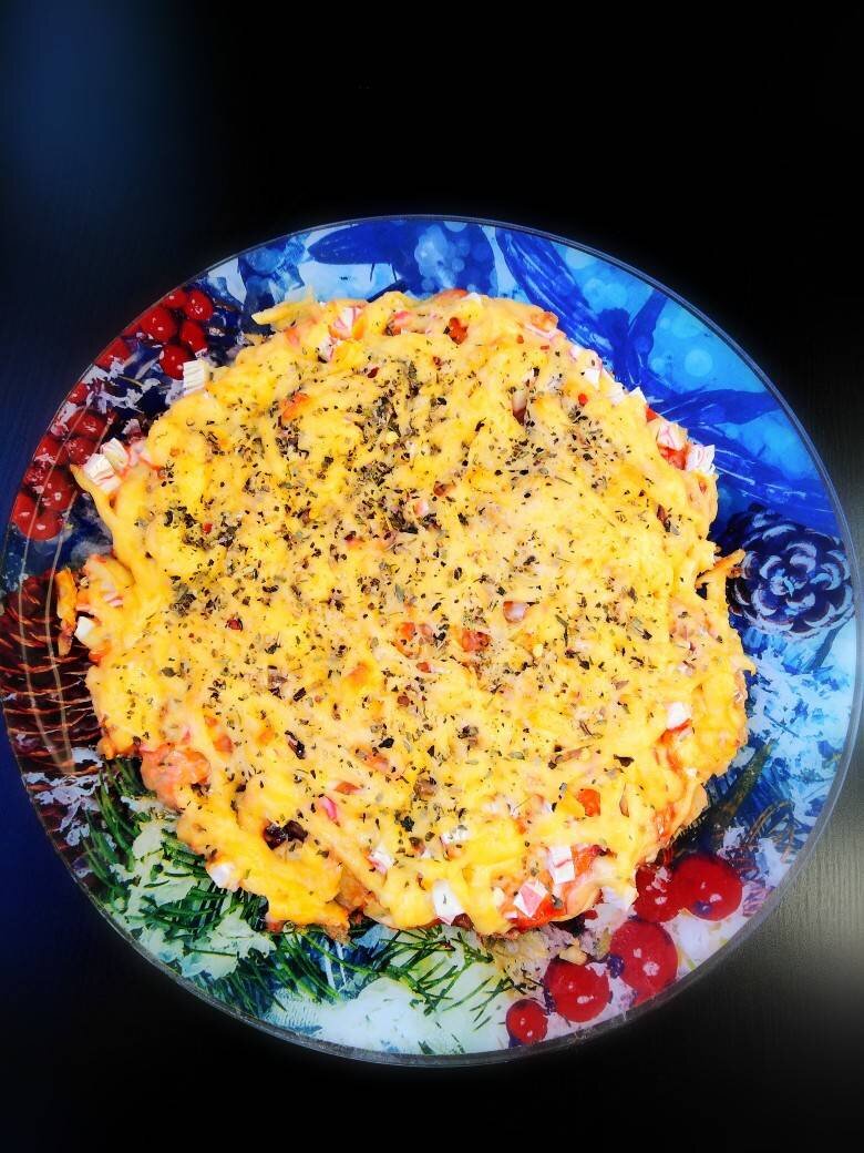#непп Если вдруг пельмени подтаяли и слиплись - не огорчайтесь! Из них можно приготовить очень оригинальное блюдо - пиццу! У меня пельмени рыбные, поэтому я к ним добавила крабовые палочки. А дальше уже ваша фантазия... 😂 За идею благодарю автора нашего сайта @velereya Наталию Решетник. Ингредиенты: рыбных пельменей, крабовых палочек или крабового мяса, майонез, кетчуп, твёрдого сыра, специи и приправы, у меня сушеный базилик и перцы Способ приготовления: Моя ошибка в приготовлении - это то, что я выложила пельмени на пекарскую бумагу - она прилипла к готовому блюду. В следующий раз приготовлю, как и советовала Наталия - присыпать форму овсяными хлопьями. Итак, пельмени немного примять, смазать кетчупом и майонезом. Крабовые палочки мелко нарезать, посыпать на основу. Сверху посыпать натертый сыр и приправы. Поставить в разогретую до 180 градусов духовку на 20 - 25 минут (ориентируйтесь по своей). Приятного аппетита! Если вам понравился мой рецепт и вы приготовите по нему - мне будет