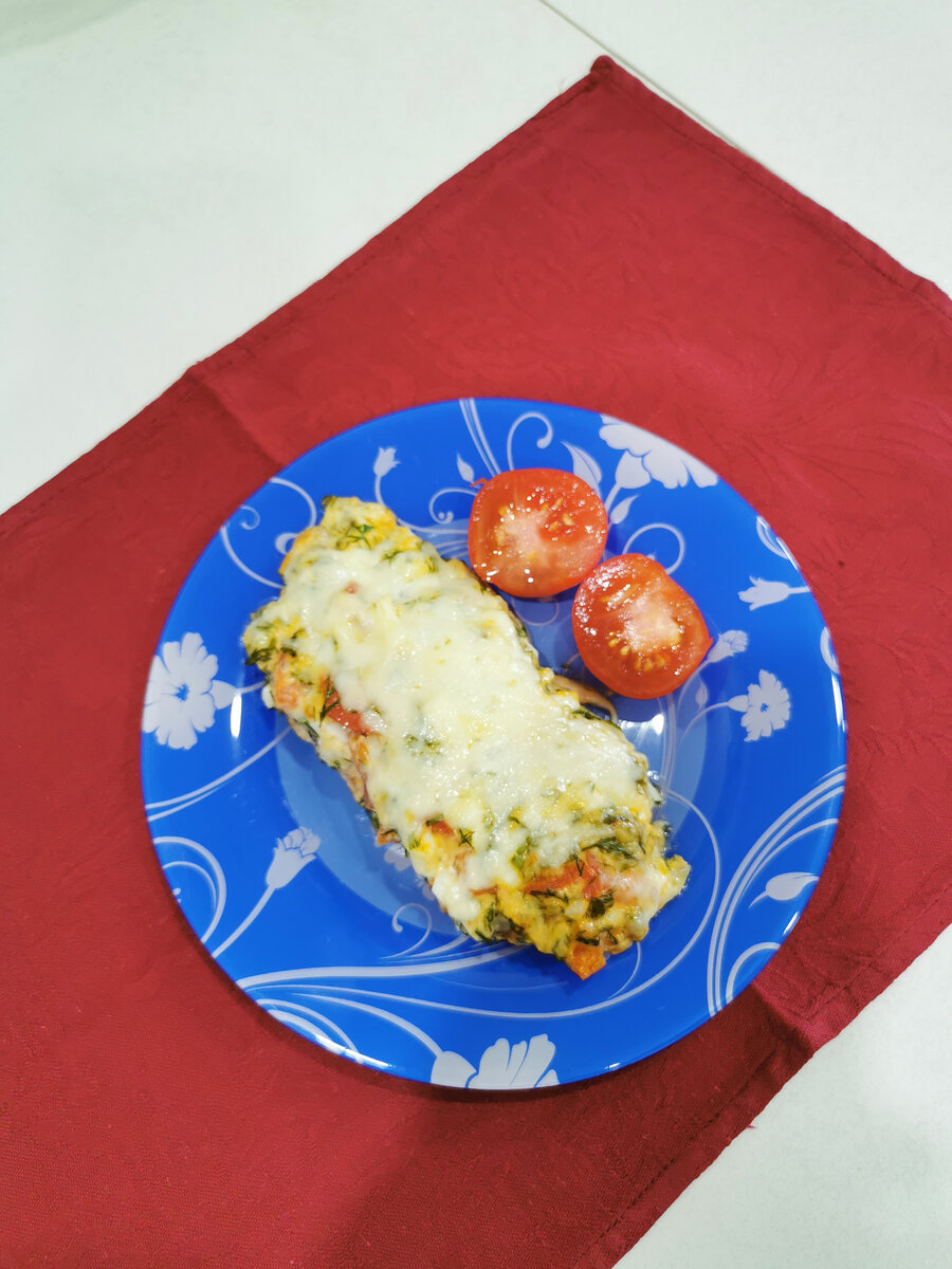 Здравствуйте, мои дорогие! Сегодня в меню куриная грудка по царски - замечательное блюдо, которое подойдет как для будничного, так и для праздничного стола. Когда нужно быстро и недорого, я всегда выбираю курицу! Она готовится быстро, а способов приготовления огромное множество. И сегодня я поделюсь одним из вариантом приготовления. Ингредиенты: Куриная грудка - 400гр. Сыр - 150 гр. Яйца отварные - 2шт. Майонез - 100гр. Помидор - 1шт. Зелень - небольшой пучок Соль, перец черный молотый, паприка - по вкусу Чеснок - 2 зубчика. Куриную грудку моем, обсушиваем, нарезаем пластами не слишком тонко. Слегка отбиваем с двух сторон. С двух сторон посыпаем солью, черным молотым перцем и паприкой. слегка смазываем майонезом. Даем постоять 1 час. Сыр трем на терке. 1/3 часть сыра от общей массы откладываем в отдельную миску. Вареные яйца режем кубиком. Помидоры режем мелко и отправляем к яйцам. Зелень измельчаем и отправляем к яйцам и помидорам.