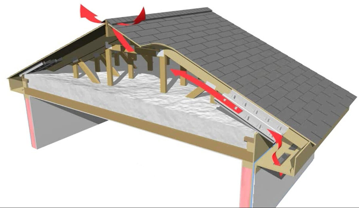 Что такое вентиляционная камера в кровле? и зачем она нужна? Время не стоит на месте, и на смену шиферу давно уже пришли современные кровельные материалы, а так же технологии позволяющие прослужить кровле много десятилетий. Одним из важнейших моментов при монтаже кровельной системы является вентиляция под кровельного пространства. Кровля самый нагруженный участок здания. Летом температура кровельного материала может превышать 100 градусов. Град, дождь и снег постоянно воздействуют на кровельный материал. Зимой на кровле образуется наледь негативно воздействуя на кровельное покрытие, а при суточных перепадах на нижней части кровли обязуется конденсат, который воздействует на кровельный материал снизу. Чтобы снять, или хотя бы уменьшить, все эти нагрузки на кровельную конструкцию, современные производители кровельных материалов, применяют технологию вентиляции под кровельного пространства, далее рассмотрим как это работает. Как в любой вентиляционной системе необходимо обеспечить приток