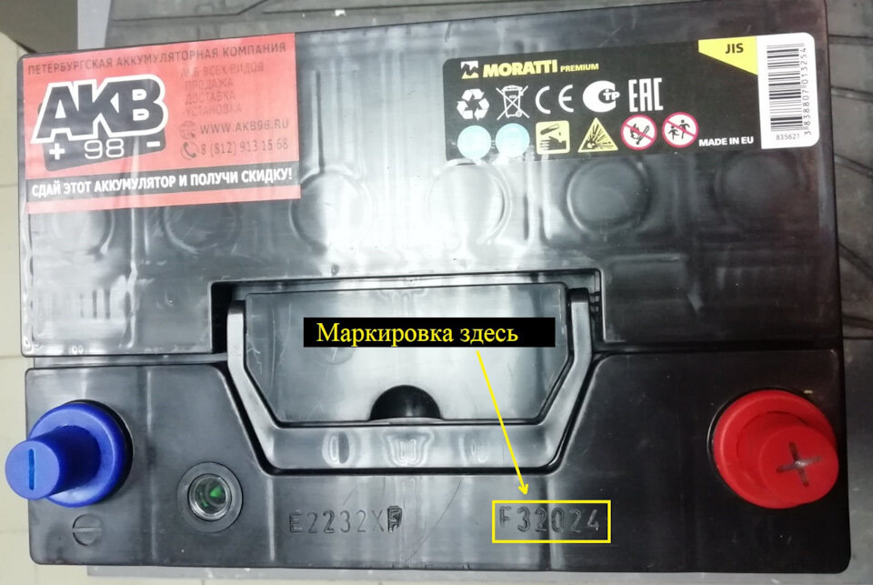 Как и где посмотреть дату выпуска аккумулятора TOPLA / MORATTI? Все производители по-разному маркируют свою продукцию. Дата выпуска АКБ почти всегда зашифрована внутри кода и нет какого-то общего или единого стандарта для всех заводов-изготовителей. В большинстве случаев заводской код, содержащий дату выпуска и номер партии, наносится на корпус аккумулятора методом лазерной маркировки. Шифр представляет собой комбинацию букв и цифр, контур которых выполнен небольшими точками. Вы можете самостоятельно определить год выпуска аккумулятора при помощи простой инструкции. — Очистите пыль и грязь с аккумуляторной батареи.