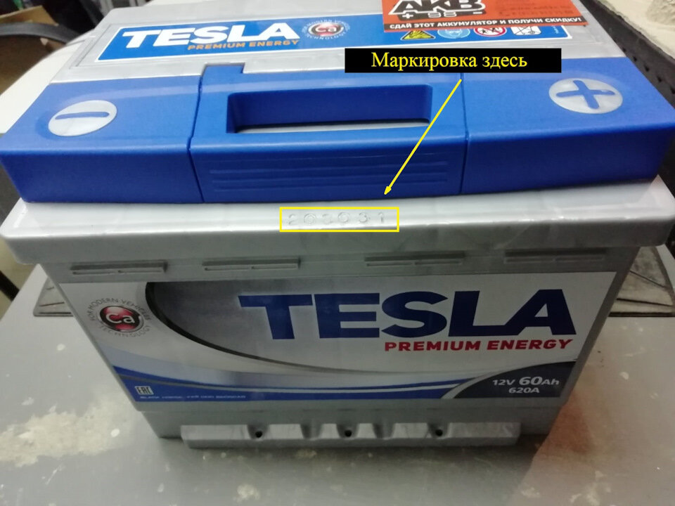 Как и где посмотреть дату выпуска аккумулятора Tesla / Black Horse? Все производители по-разному маркируют свою продукцию. Дата выпуска АКБ почти всегда зашифрована внутри кода и нет какого-то общего или единого стандарта для всех заводов-изготовителей. В большинстве случаев заводской код, содержащий дату выпуска и номер партии, наносится на корпус аккумулятора методом лазерной маркировки. Шифр представляет собой комбинацию букв и цифр, контур которых выполнен небольшими точками. Вы можете самостоятельно определить год выпуска аккумулятора при помощи простой инструкции. — Очистите пыль и грязь с аккумуляторной батареи.