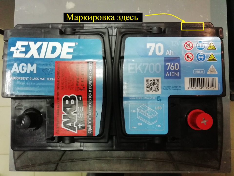 — Расшифруйте маркировку, используя справочник АККУМУЛЯТОР EXIDE Дата выпуска на аккумуляторах Эксайд европейского производства.