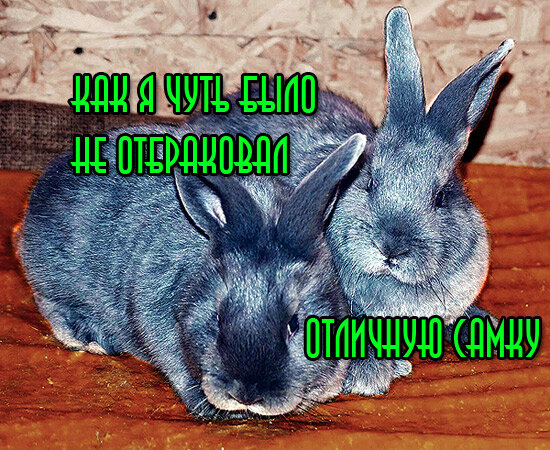 Однажды, решив завести новую породу кроликов, я отправился в неблизкий путь и прикупил в надёжном источнике (рекламировать его не буду) двух замечательных самочек породы Венский Голубой. Они и правда были сказочно красивыми. Очередная линька уже успела закончиться, мех блестел и отливал различными "обертонами". Особенный эффект проявлялся при поглаживании зверьков против шерсти. Нижняя часть волосков оголялась и добавляла сизый оттенок (тёмно-серый цвет с синевато-белёсым отливом). В общем, не мог нарадоваться приобретению.