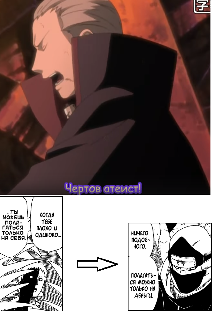 -"Ничего подобного, полагаться можно только на деньги!" - завершает Какузу.